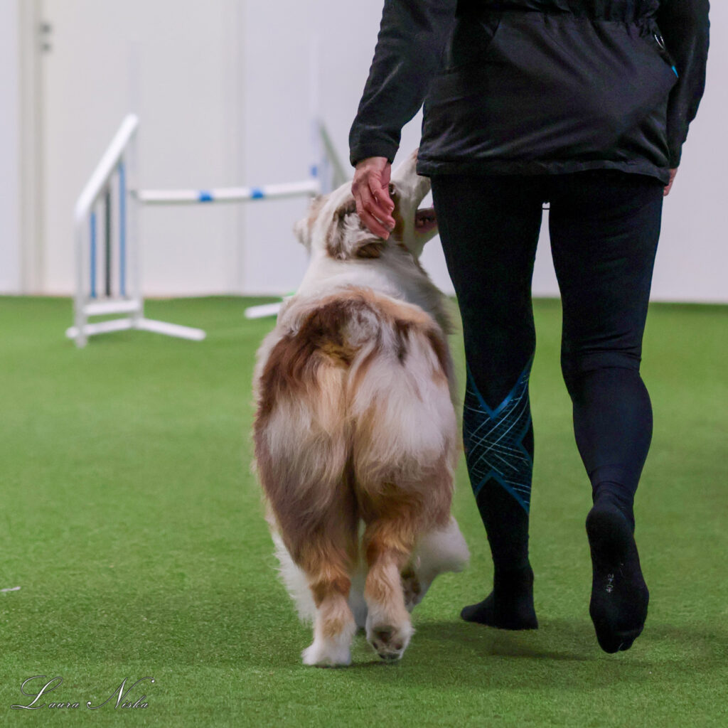 Koira liikkuu hallitummin – Näkyy erityisesti hypyissä, käännöksissä ja vaativissa asennoissa.